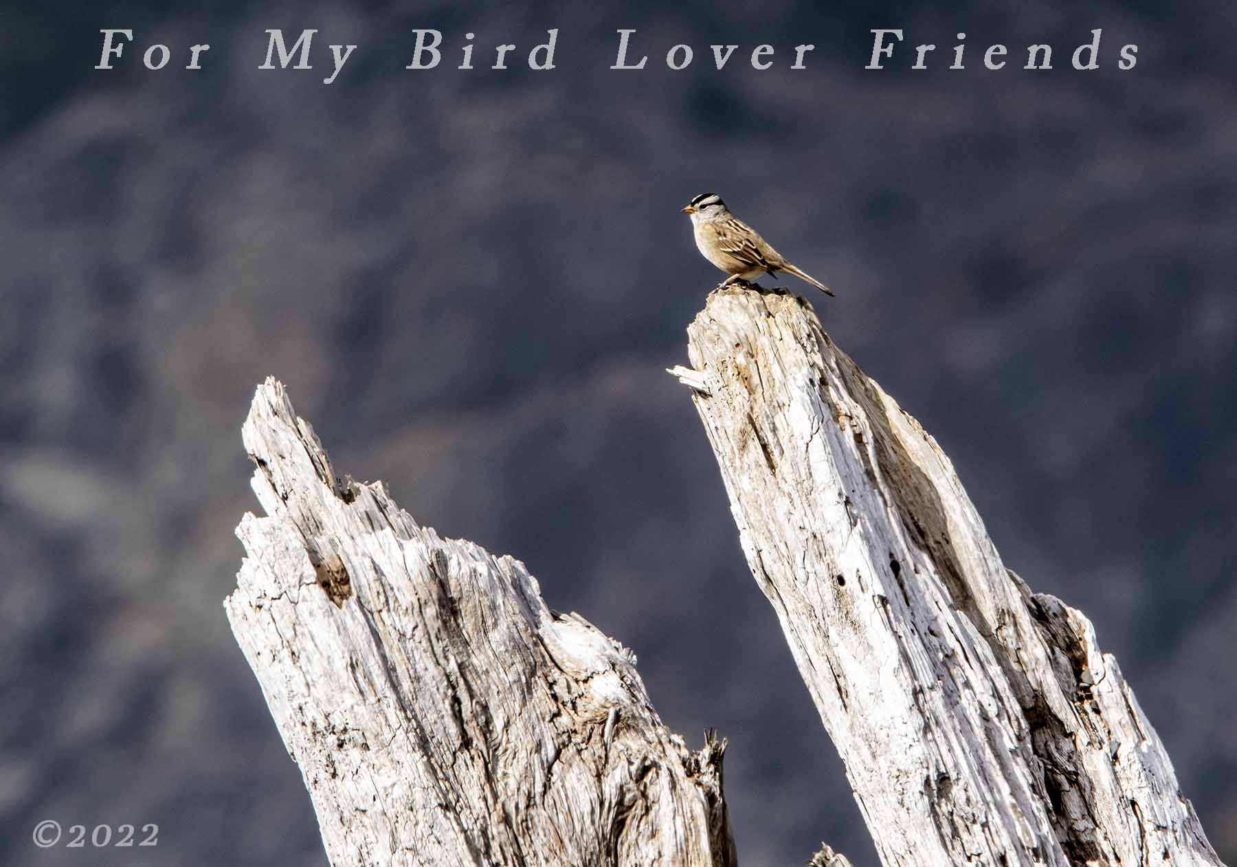 My sudden fascination with birds seemed to be God-given. One quiet evening just before sunset I witnessed a mother robin’s grief at the death of her baby that touched me so deeply it inspired within me an interest in birds I couldn’t shake. I asked God to bring birds into my yard where, up until then, sightings had been few, very few. I studied their feeding habits and began putting food out. Seemingly out of nowhere, significant varieties of beautiful birds would arrive, sometimes in surprising numbers, satisfying the uncanny interest I had in their visits. Experiences with ‘my birds’ have taught me to watch all around me for indicators in nature of the character of our Creator and Lord. I will be sharing many of my dear feathered acquaintances with you in pictures. As my writings are updated so will be my photographs.